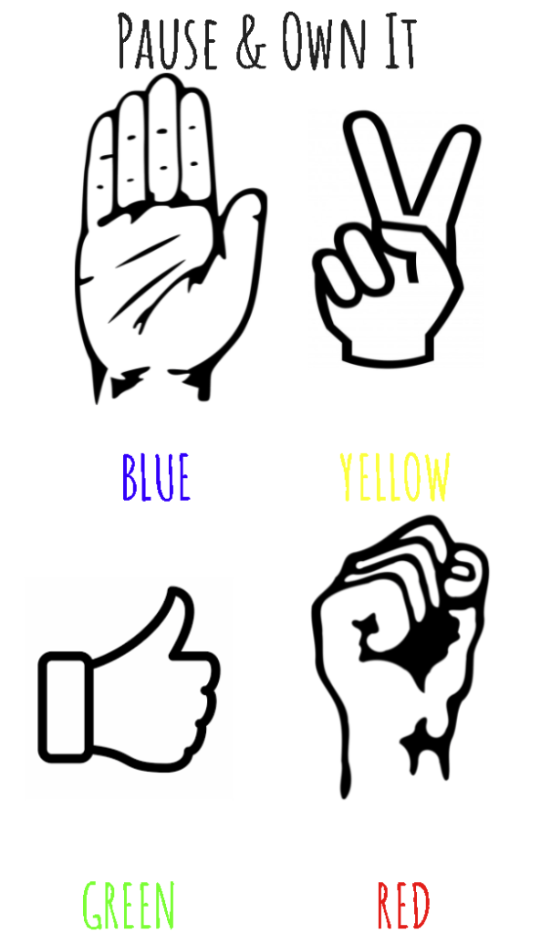We use blue = sick, sad, tired; green = ready to learn; yellow = lots of energy but it feels more positive in your body (hyped, excited); red = energy but it doesn’t feel as positive (angry, frustrated)